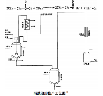 丙酰溴由無水丙酸在紅磷( 赤磷) 存在下與溴反應而得。 其反應式如下: